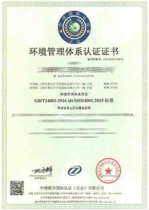 環境管理體系認證證書